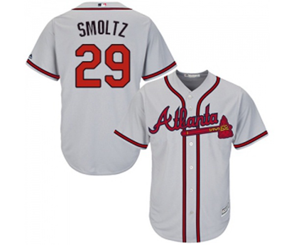 Atlanta Braves #29 John Smoltz Replica Grey Road Cool Base Baseball Jersey