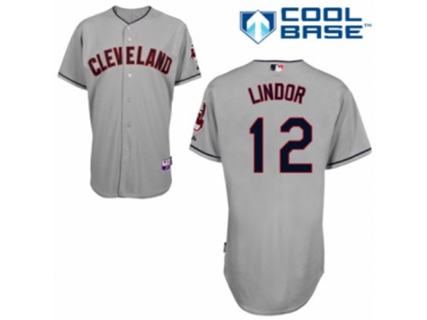 Cleveland Indians #12 Francisco Lindor Authentic Grey Road Cool Base MLB Jersey