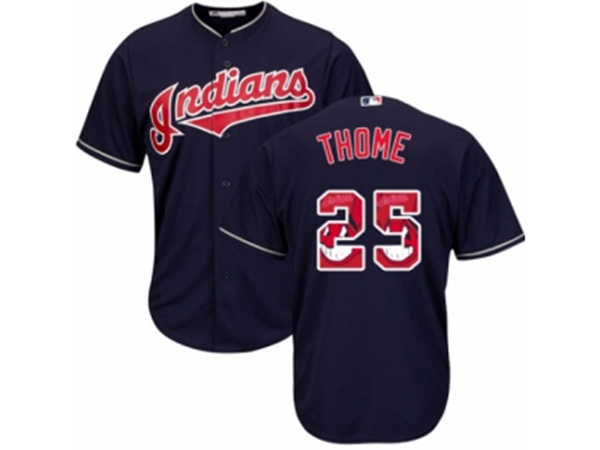 Cleveland Indians #25 Jim Thome Authentic Navy Blue Team Logo Fashion Cool Base MLB Jersey