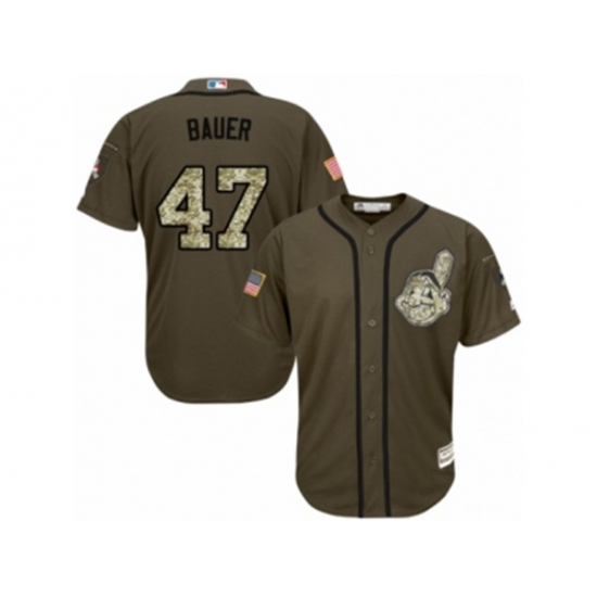Cleveland Indians #47 Trevor Bauer Replica Green Salute to Service MLB Jersey