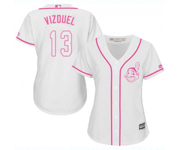 Womens Cleveland Indians #13 Omar Vizquel Replica White Fashion Cool Base Baseball Jersey