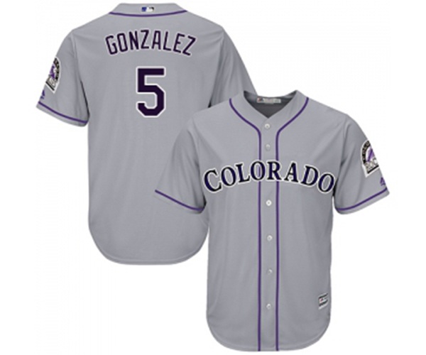 Colorado Rockies #5 Carlos Gonzalez Replica Grey Road Cool Base Baseball Jersey