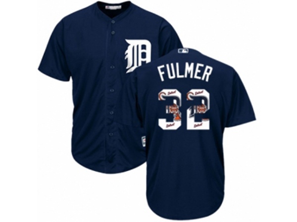Detroit Tigers #32 Michael Fulmer Authentic Navy Blue Team Logo Fashion Cool Base MLB Jersey