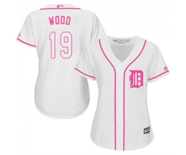 Womens Detroit Tigers #19 Travis Wood Authentic White Fashion Cool Base Baseball Jersey