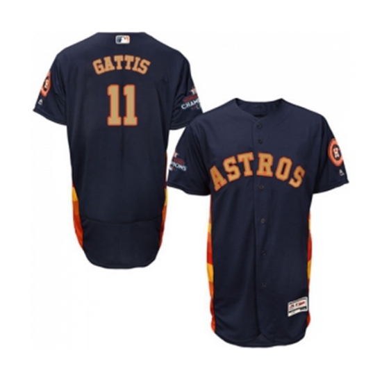 Houston Astros #11 Evan Gattis Navy Blue Alternate 2018 Gold Program Flex Base Authentic Collection Baseball Jersey