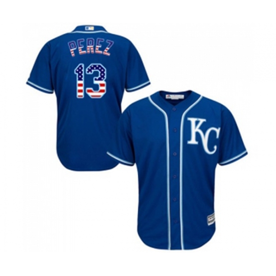 Kansas City Royals #13 Salvador Perez Replica Royal Blue USA Flag Fashion Baseball Jersey