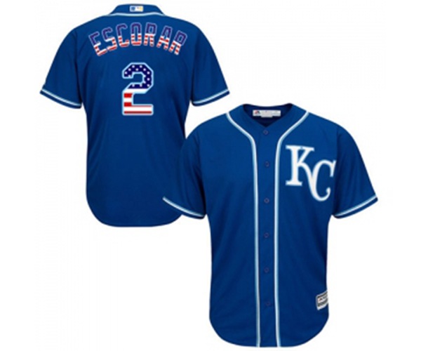 Kansas City Royals #2 Alcides Escobar Replica Royal Blue USA Flag Fashion Baseball Jersey