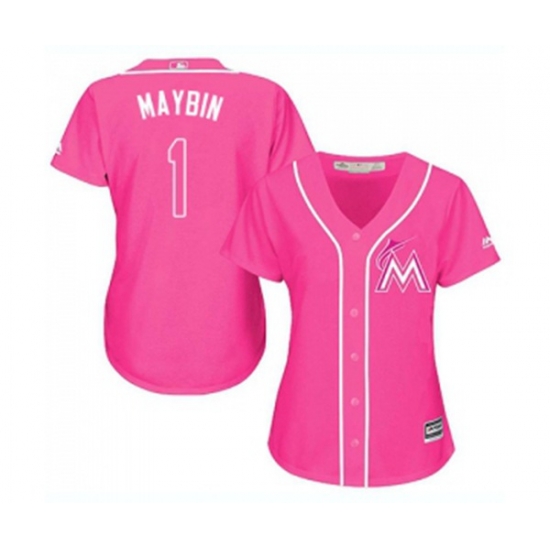 Womens Miami Marlins #1 Cameron Maybin Authentic Pink Fashion Cool Base Baseball Jersey