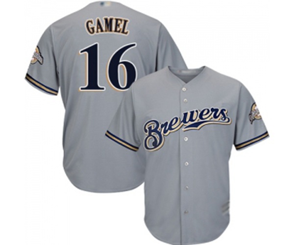 Milwaukee Brewers #16 Ben Gamel Replica Grey Road Cool Base Baseball Jersey