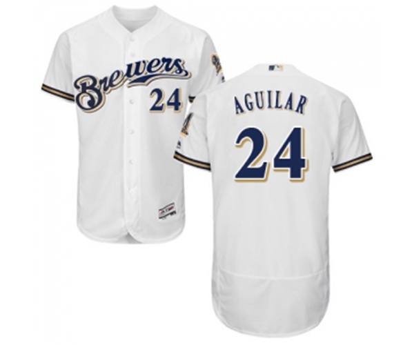 Milwaukee Brewers #24 Jesus Aguilar White Alternate Flex Base Authentic Collection Baseball Jersey