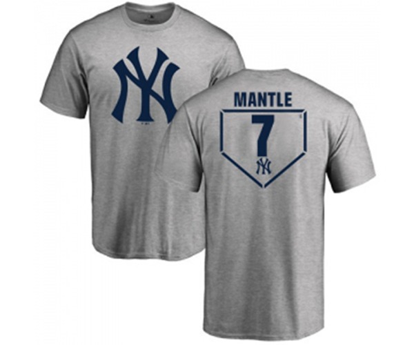 New York Yankees #7 Mickey Mantle Replica Navy Gray Alternate Baseball T-Shirt