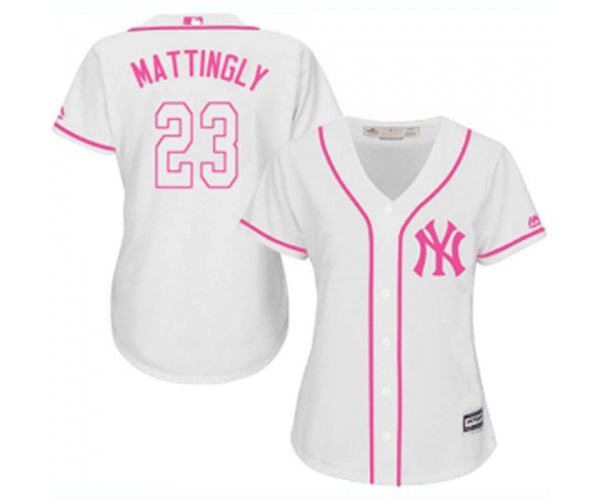 Womens New York Yankees #23 Don Mattingly Authentic White Fashion Cool Base Baseball Jersey