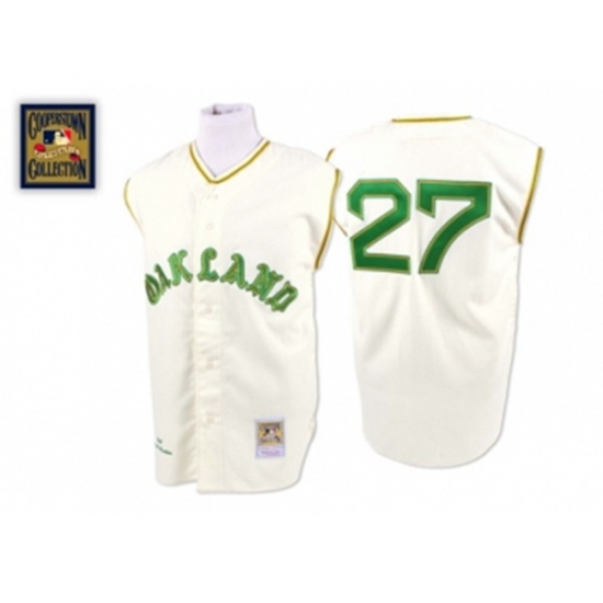 1968 Oakland Athletics #27 Catfish Hunter Replica Cream Throwback Baseball Jersey