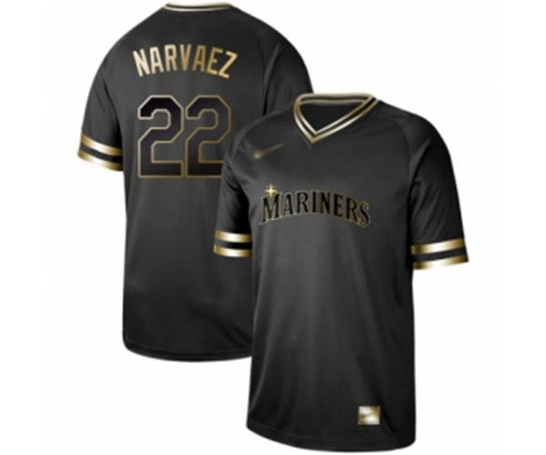 Seattle Mariners #22 Omar Narvaez Authentic Black Gold Fashion Baseball Jersey