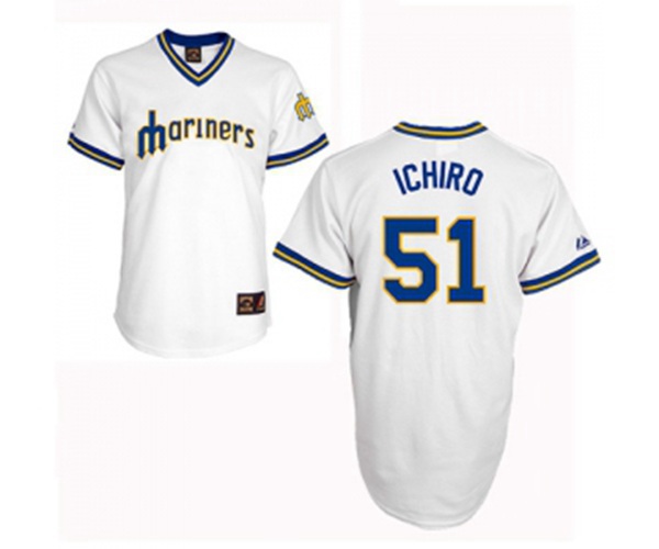 Seattle Mariners #51 Ichiro Suzuki Replica White Cooperstown Throwback Baseball Jersey