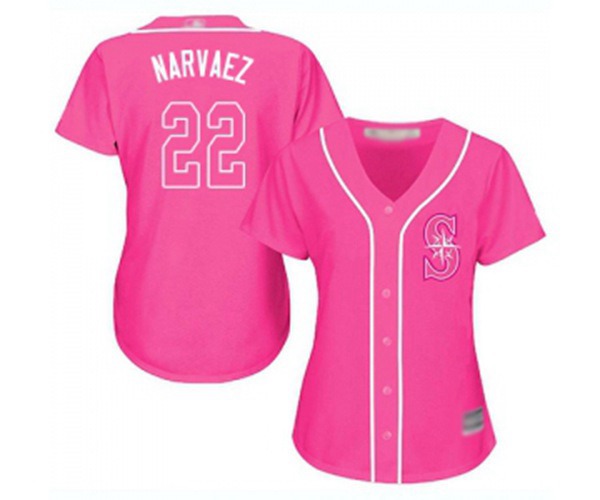 Womens Seattle Mariners #22 Omar Narvaez Authentic Pink Fashion Cool Base Baseball Jersey