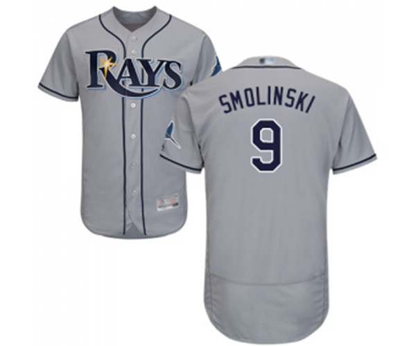 Tampa Bay Rays #9 Jake Smolinski Grey Road Flex Base Authentic Collection Baseball Jersey