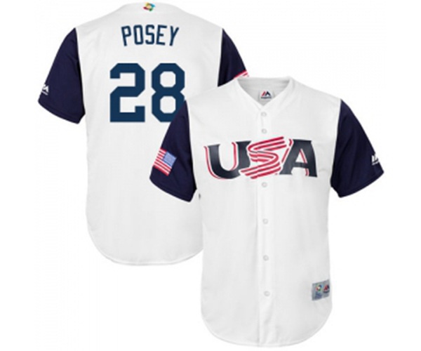 USA Baseball #28 Buster Posey White 2017 World Baseball Classic Replica Team Jersey