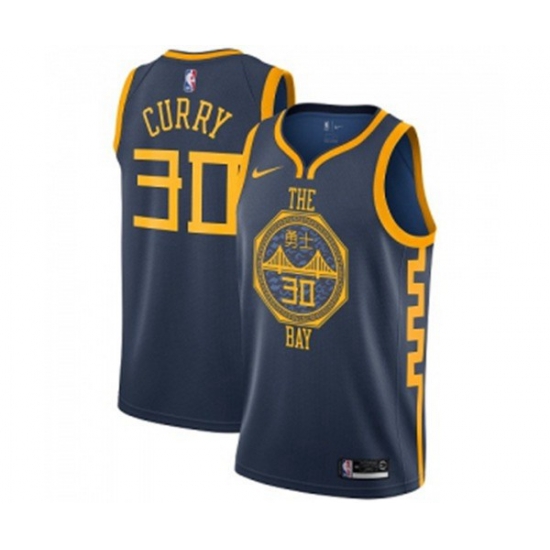 Golden State Warriors #30 Stephen Curry Authentic Navy Blue Basketball Jersey - City Edition
