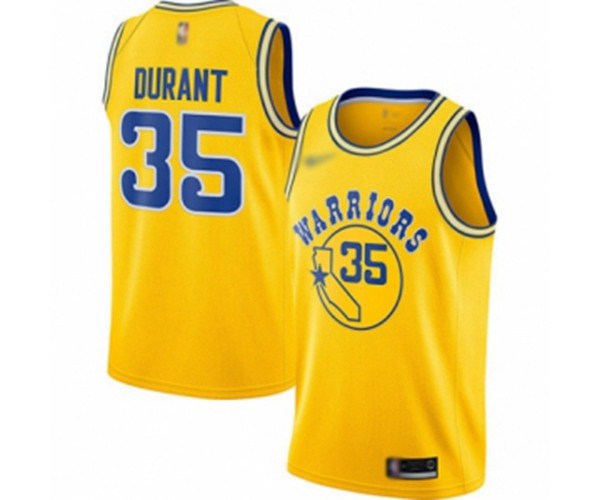 Golden State Warriors #35 Kevin Durant Authentic Gold Hardwood Classics Basketball Jersey