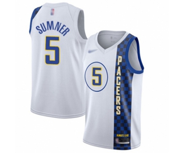 - Indiana Pacers #5 Edmond Sumner Authentic White Basketball Jersey - 2019-20 City Edition