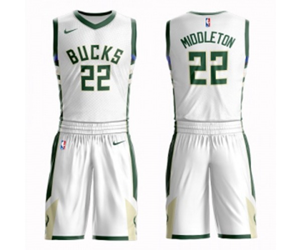 Milwaukee Bucks #22 Khris Middleton Authentic White Basketball Suit Jersey - Association Edition