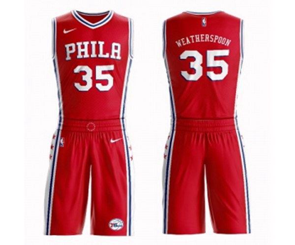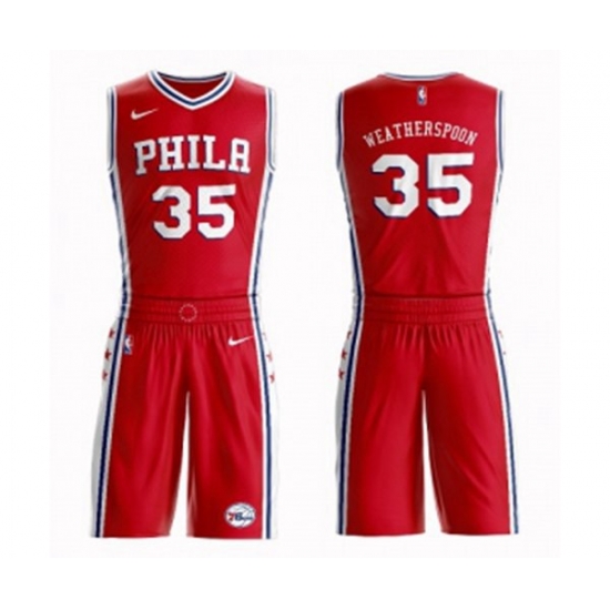 Philadelphia 76ers #35 Clarence Weatherspoon Swingman Red Basketball Suit Jersey Statement Edition
