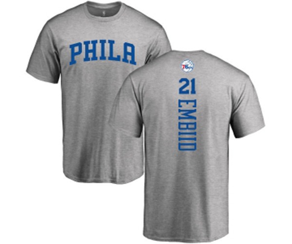 Philadelphia 76ers #21 Joel Embiid Ash Backer T-Shirt