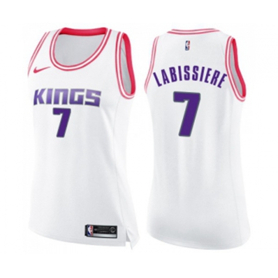 Womens Sacramento Kings #7 Skal Labissiere Swingman White Pink Fashion Basketball Jersey