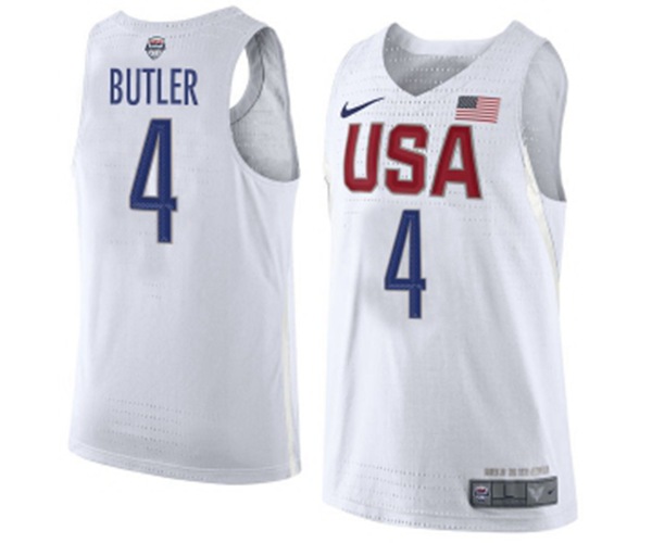 Nike Team USA #4 Jimmy Butler Authentic White 2016 Olympic Basketball Jersey