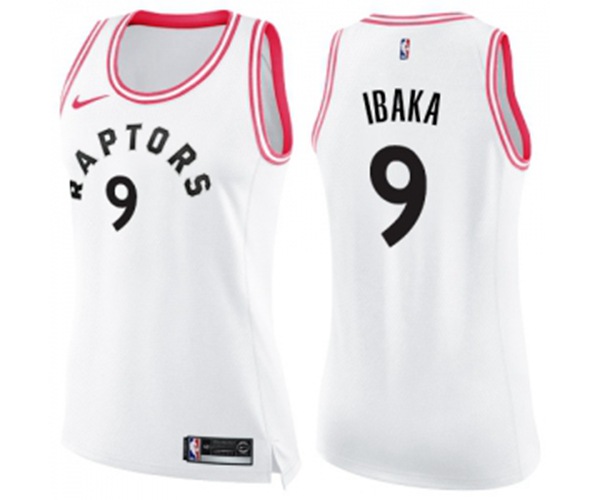 Womens Toronto Raptors #9 Serge Ibaka Swingman White Pink Fashion Basketball Jersey