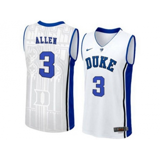 Mens Duke Blue Devils Garyson Allen #3 V Neck College Basketball Elite Jersey - White