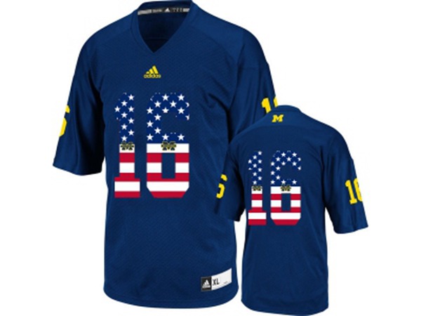 2016 US Flag Fashion-Mens Michigan Wolverines Denard Robinson #16 College Football Jersey - Navy Blue