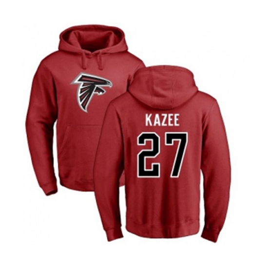 Atlanta Falcons #27 Damontae Kazee Red Name & Number Logo Pullover Hoodie