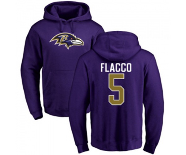 Baltimore Ravens #5 Joe Flacco Purple Name & Number Logo Pullover Hoodie