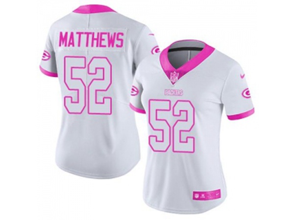 Women Green Bay Packers #52 Clay Matthews White Pink Stitched NFL Limited Rush Fashion Jersey