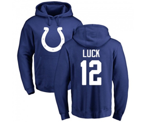 - Indianapolis Colts #12 Andrew Luck Royal Blue Player Pullover NFL Hoodie