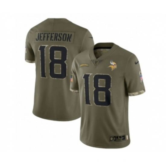 Minnesota Vikings #18 Justin Jefferson 2022 Olive Salute To Service Limited Stitched Jersey