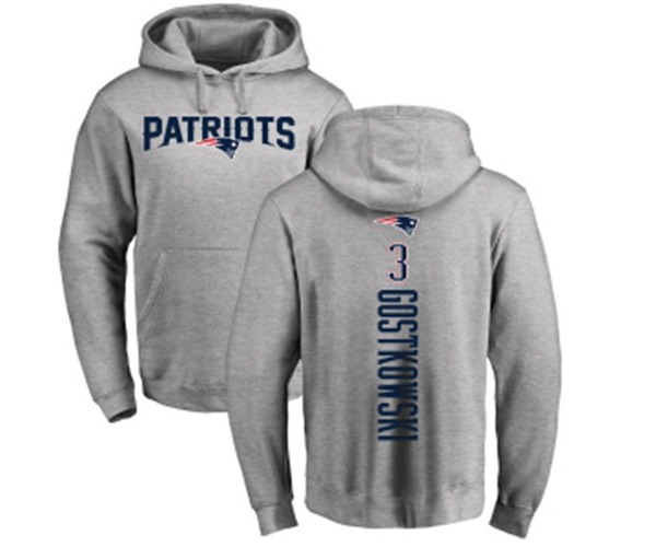 New England Patriots #3 Stephen Gostkowski Ash Backer Pullover Hoodie