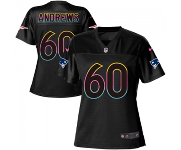 Women New England Patriots #60 David Andrews Game Black Fashion Football Jersey