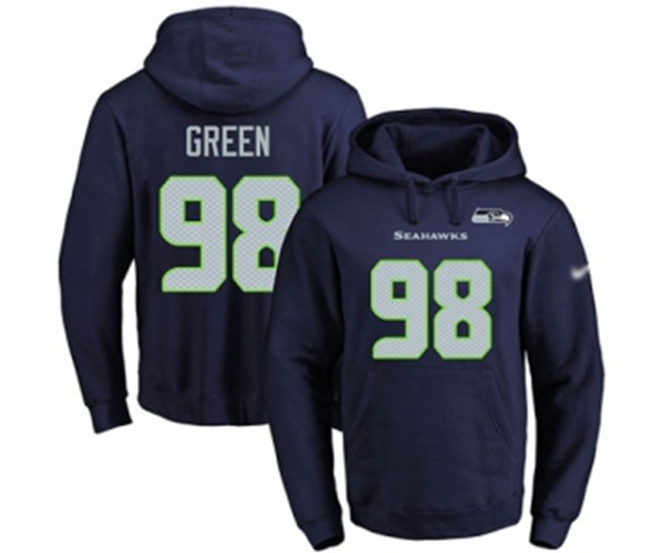 Seattle Seahawks #98 Rasheem Green Navy Blue Name & Number Pullover Hoodie
