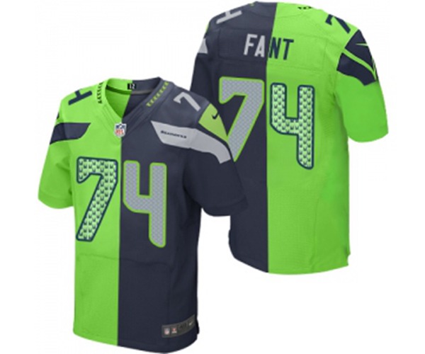 Seattle Seahawks #74 George Fant Elite Navy Green Split Fashion Football Jersey