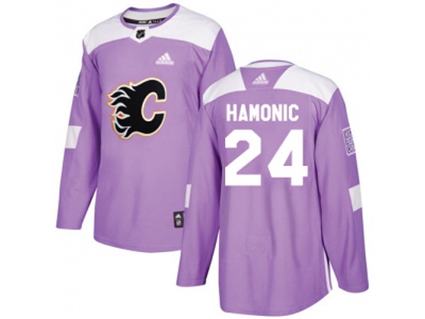 Adidas Calgary Flames #24 Travis Hamonic Purple Authentic Fights Cancer Stitched NHL Jerse