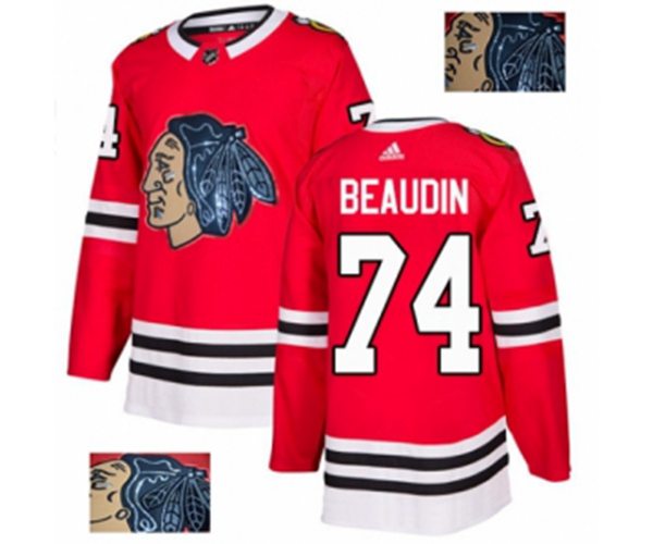 Chicago Blackhawks #74 Nicolas Beaudin Authentic Red Fashion Gold NHL Jersey