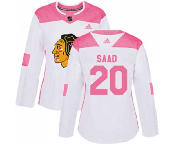 Womens Chicago Blackhawks #20 Brandon Saad Authentic White Pink Fashion NHL Jersey