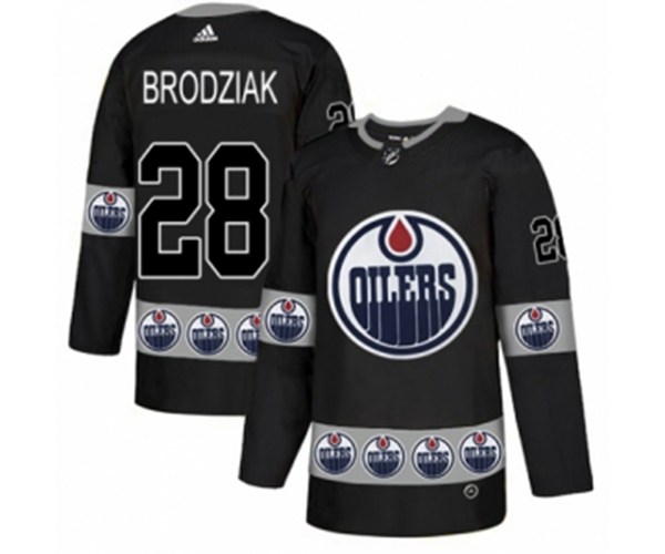 Edmonton Oilers #28 Kyle Brodziak Authentic Black Team Logo Fashion NHL Jersey