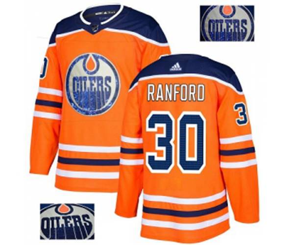 Edmonton Oilers #30 Bill Ranford Authentic Orange Fashion Gold NHL Jersey