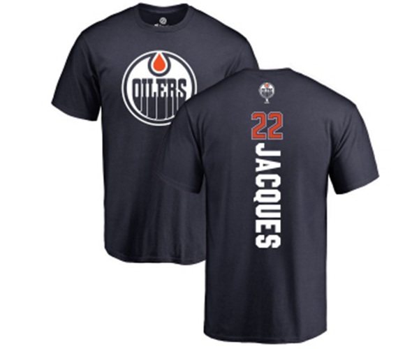 Edmonton Oilers #22 Jean-Francois Jacques Navy Blue Backer T-Shirt