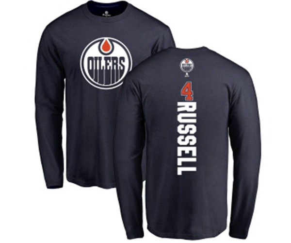 Edmonton Oilers #4 Kris Russell Navy Blue Backer Long Sleeve T-Shirt