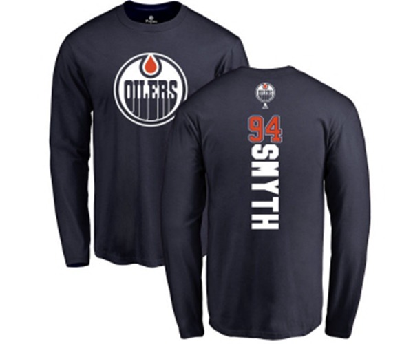 Edmonton Oilers #94 Ryan Smyth Navy Blue Backer Long Sleeve T-Shirt